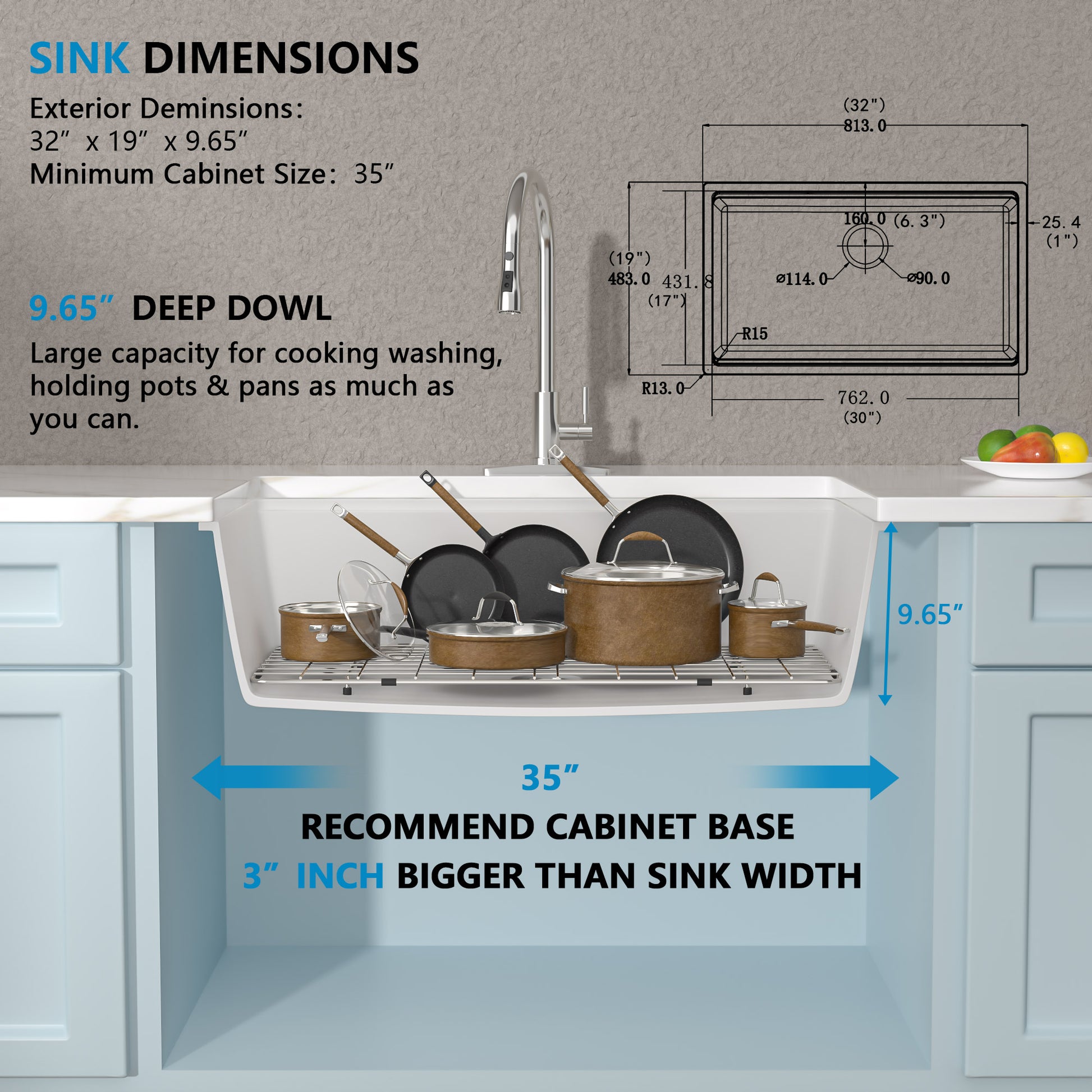 32 Granite Composite Kitchen Sink - Fulorni 32"x19" Granite Kitchen Sink Ledge Workstation Undermount White Quartz Classic Under Counter Single Bowl Sink Basin
