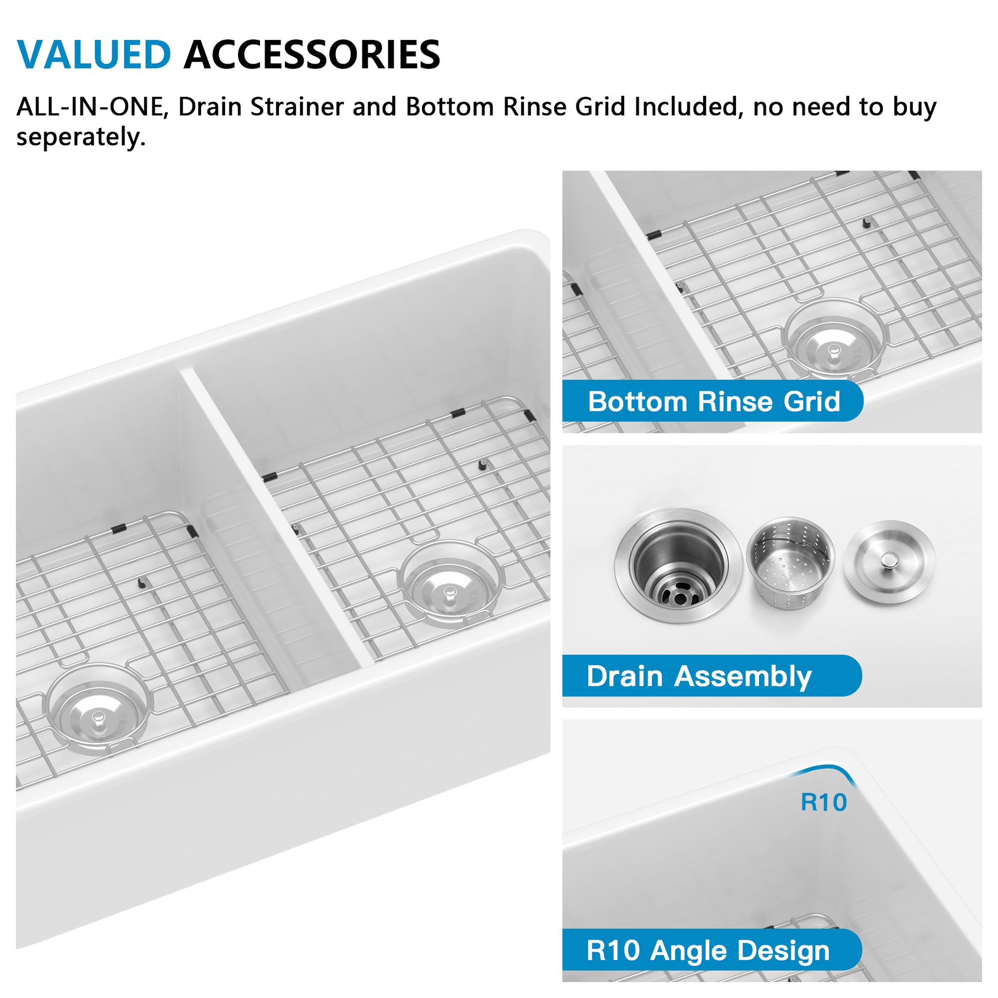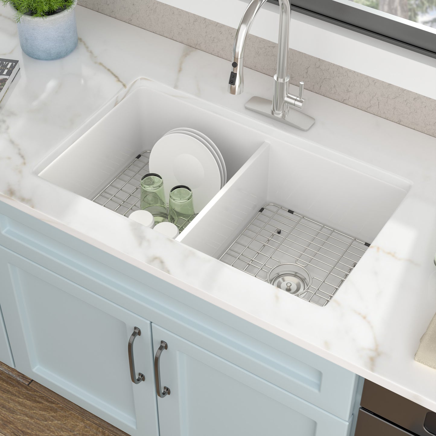 32 White Sink Undermount Double Bowl - Fulorni 32"x19" Kitchen Sink Dual Mount Double Bowl 50/50 White Ceramic Porcelain Fireclay Sink Basin