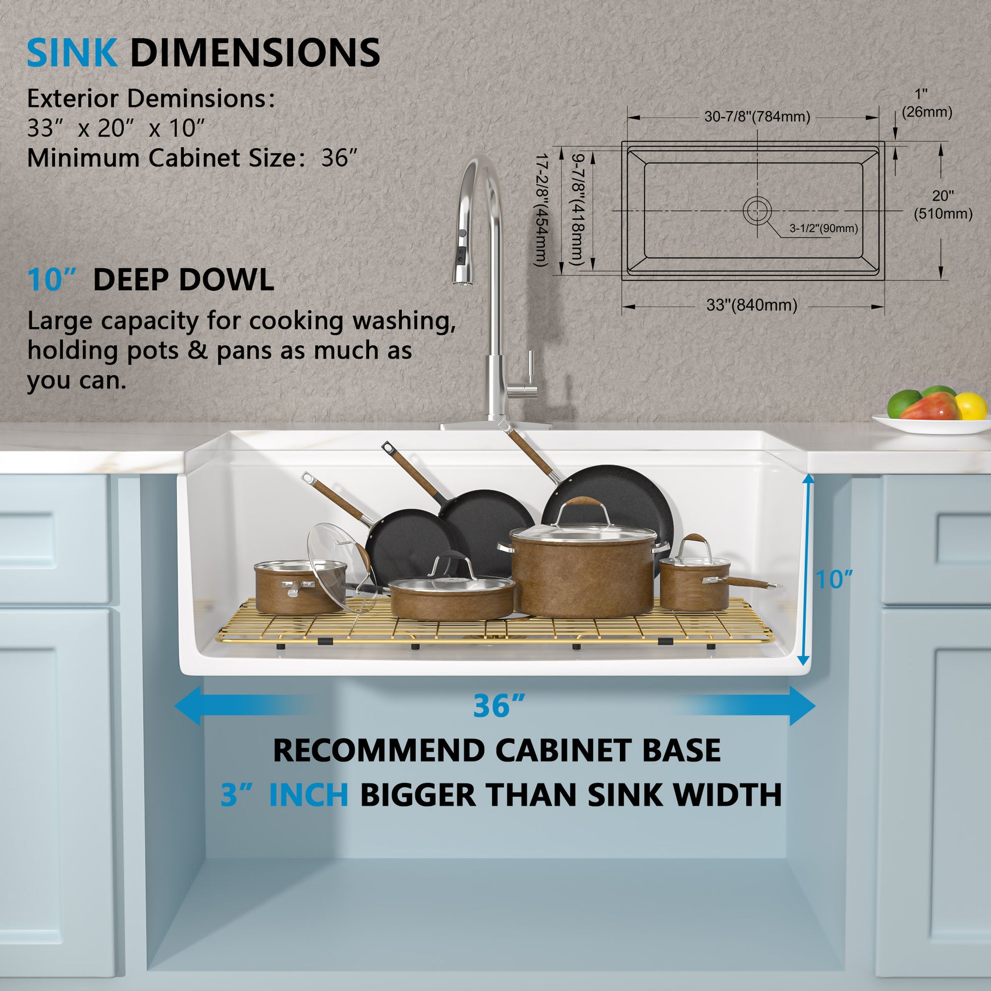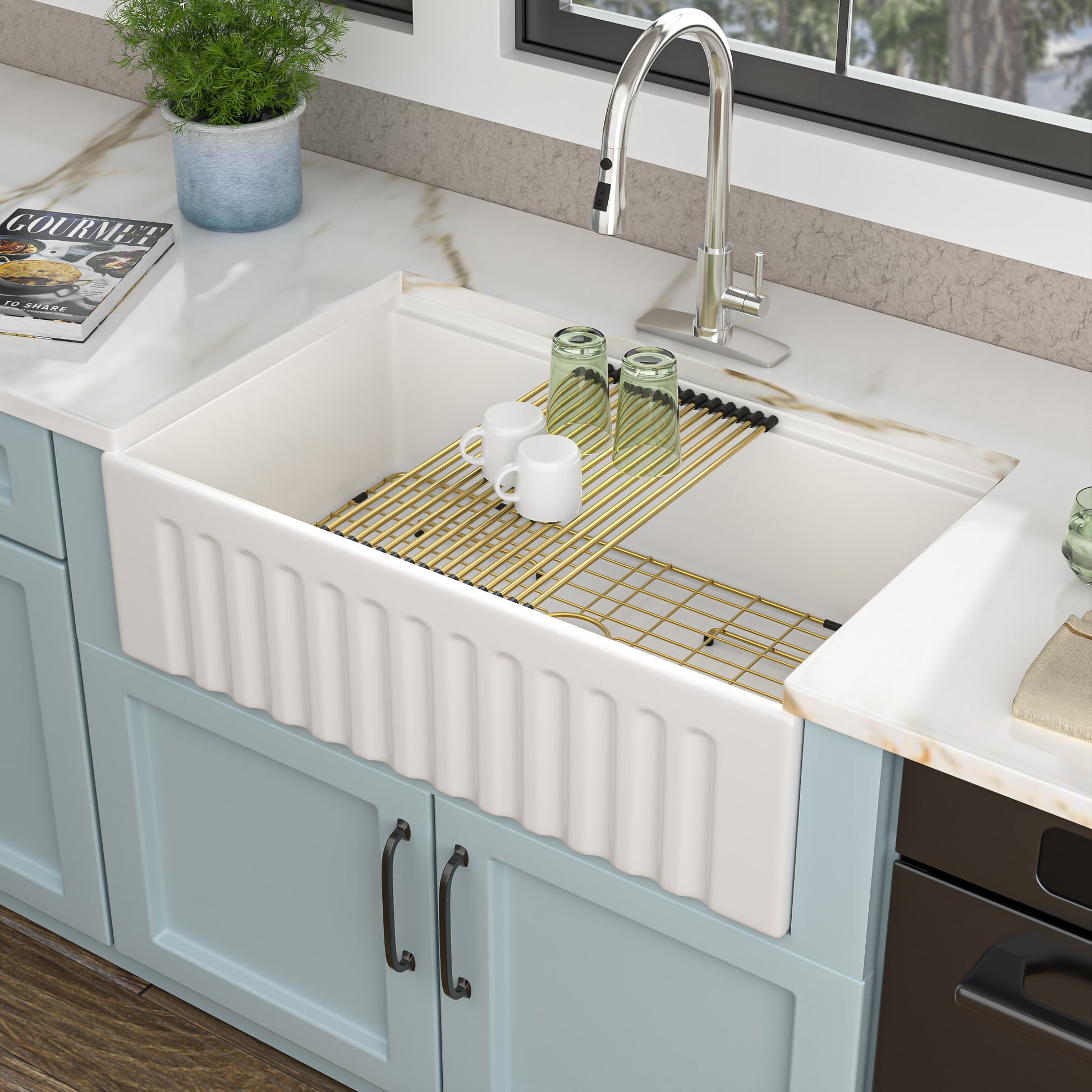 33 White Farm Sink Workstation - Fulorni 33 Inch Farmhouse Kitchen Sink Workstation with Slide Ledge Apron Front Reversible White Ceramic Porcelain Fireclay Single Bowl Farmer Sink Basin
