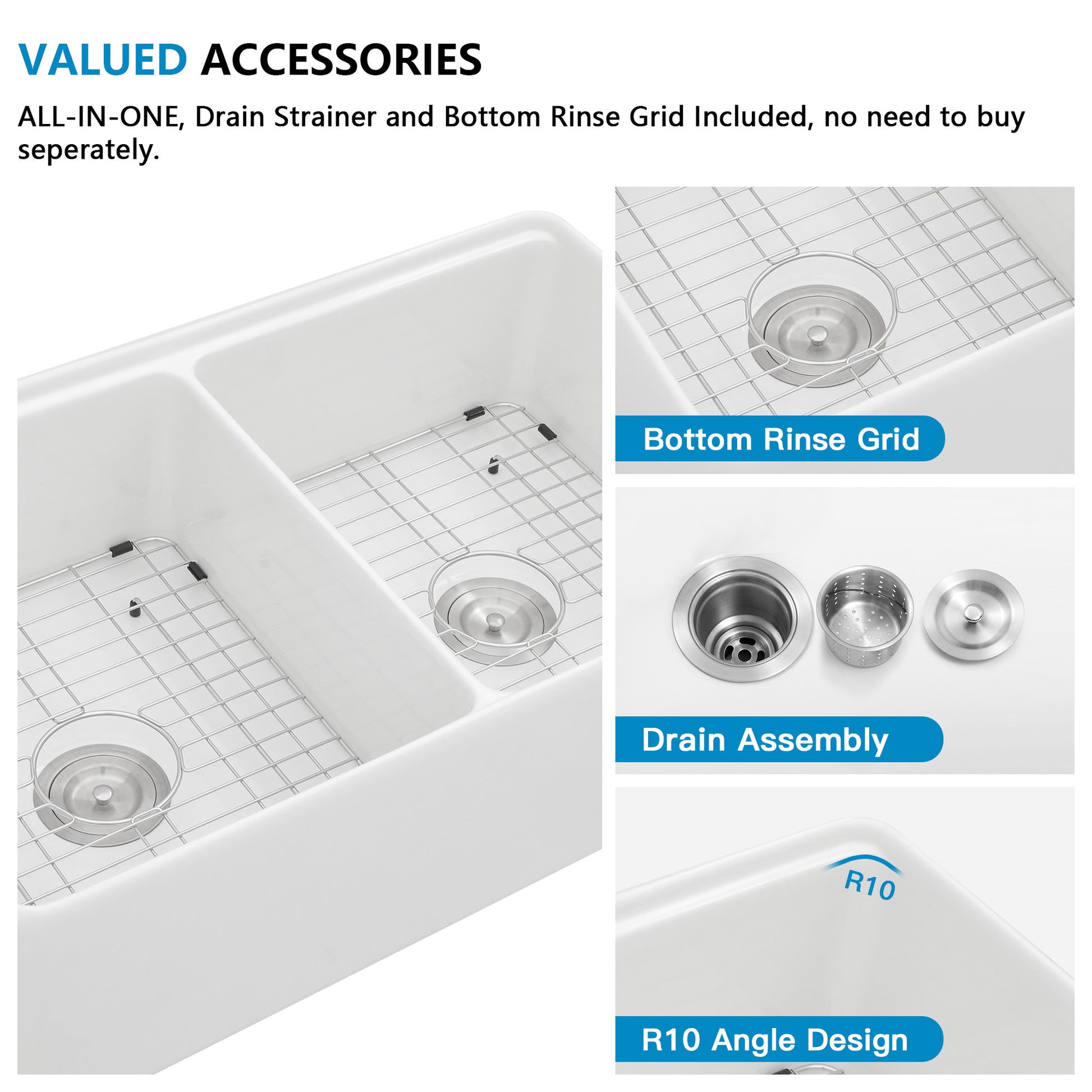 33 White Farm Sink Workstation - Fulorni 33"x20" Farmhouse Kitchen Sink Apron Front Workstation with Slide Ledge Double Bowl 50/50 White Ceramic Porcelain Fireclay Farmer Sink Basin