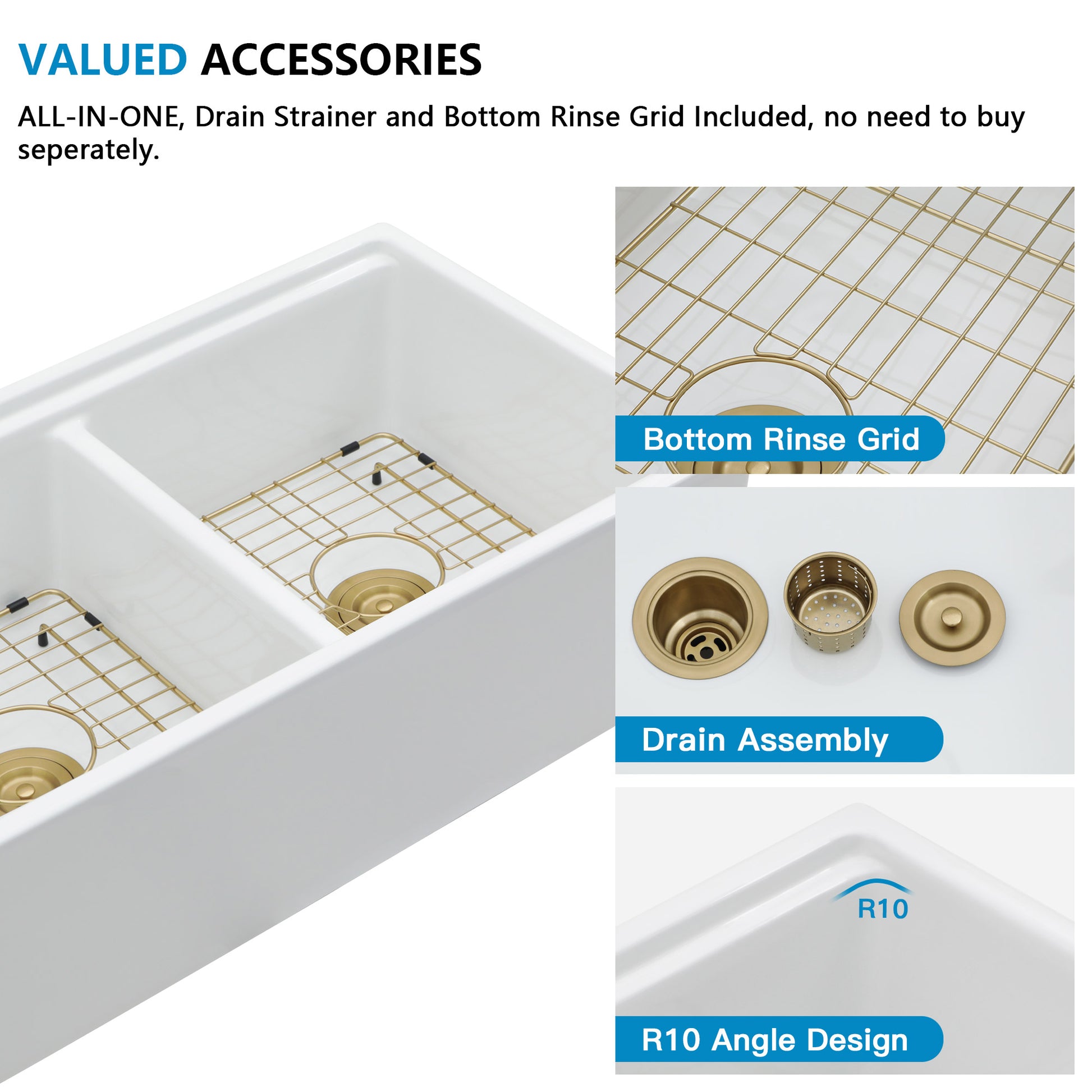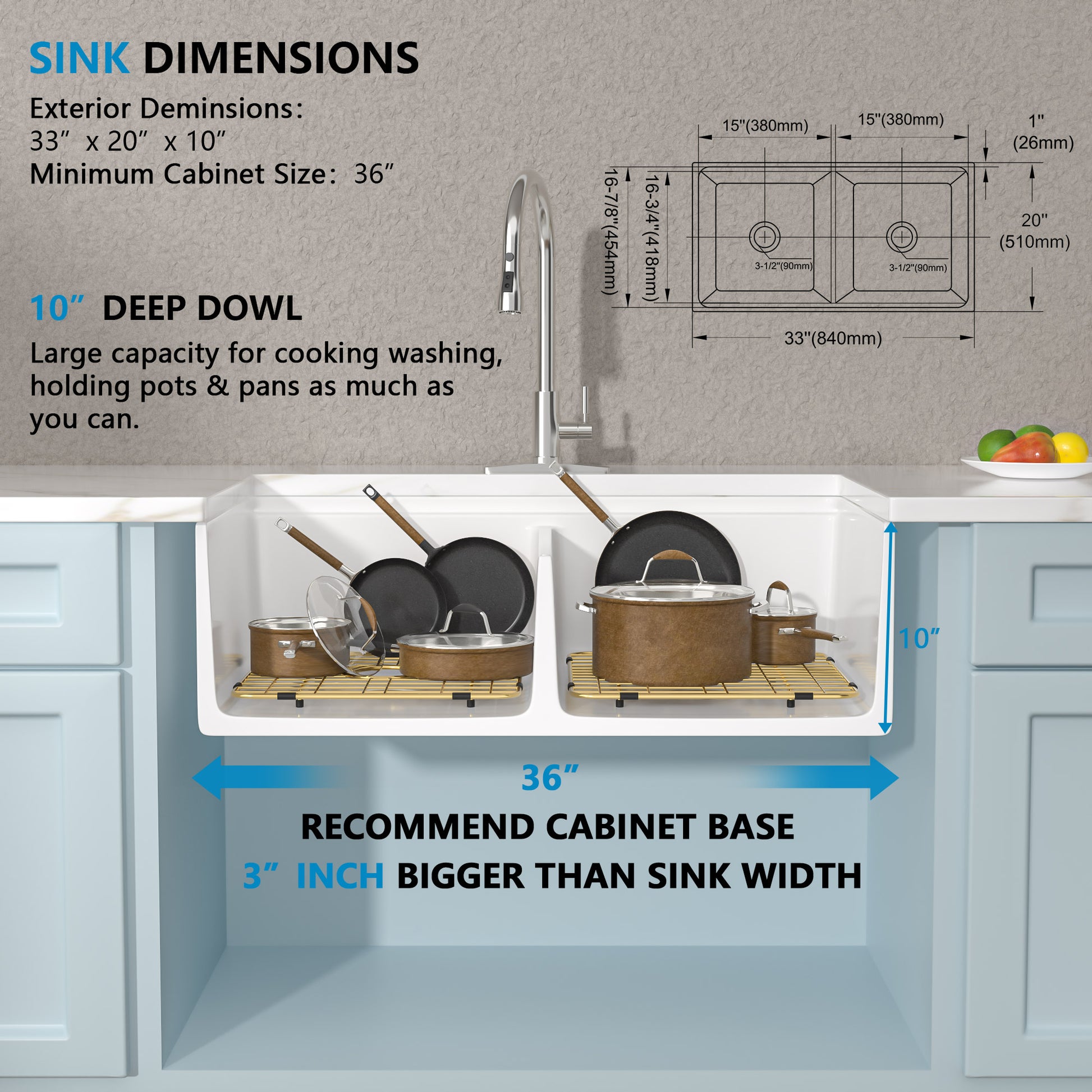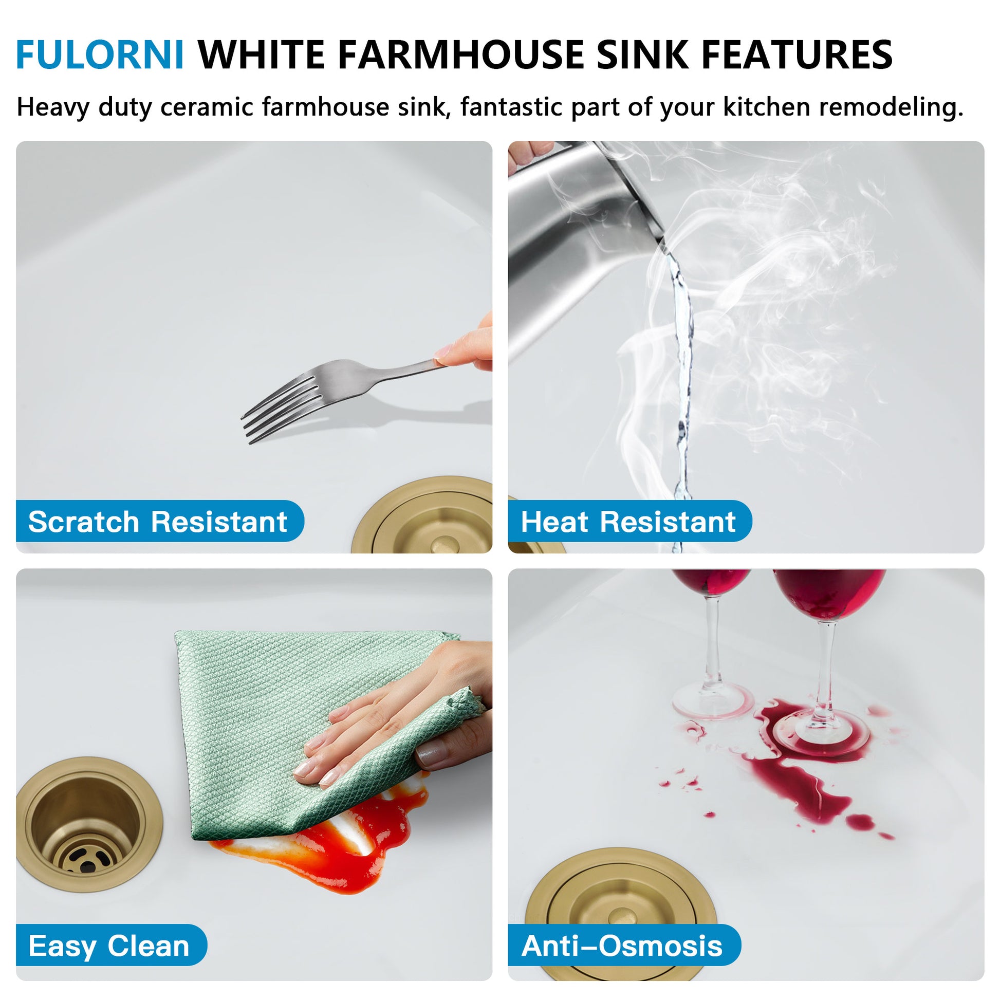 33 White Farm Sink Workstation - Fulorni 33"x20" Farmhouse Kitchen Sink Apron Front Workstation with Slide Ledge Reversible Double Bowl 50/50 White Ceramic Porcelain Fireclay Farmer Sink Basin